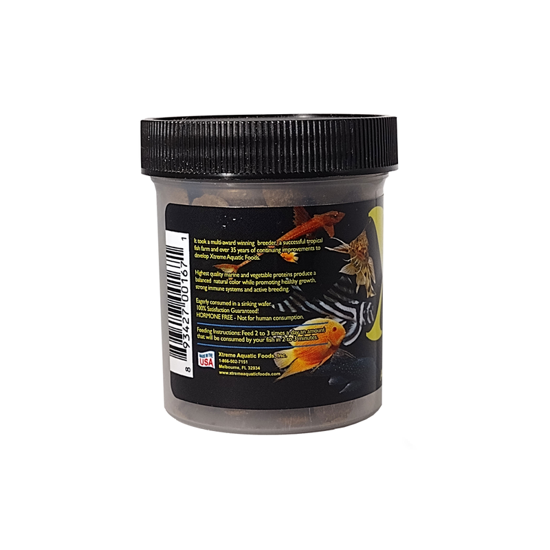 Xtreme Scrapers are one of the most popular Xtreme fish foods. These 13-14mm fast sinking wafers are specially manufactured for catfish, Plecostomus species, and loaches. The wafers sink really fast, so these highly nocturnal and bottom-dwelling species can get straight to the food. The wafers will remain hard in the water for hours, making them ideal for feeding just before you turn the aquarium lights off and allowing nocturnal species to come out and feed.